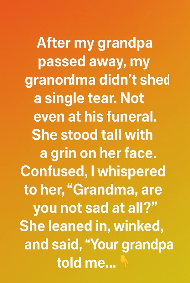 Not even at his funeral. She stood tall with a calm strength and a gentle smile on her face. Confused by her reaction, I leaned over and whispered, “Grandma, are you not sad at all?” She looked at me with warmth in her eyes, leaned in, winked, and softly said, “Your grandpa told me not to cry for him, but to live for him.” Her words puzzled me at first, but I could tell there was a deeper meaning behind them.