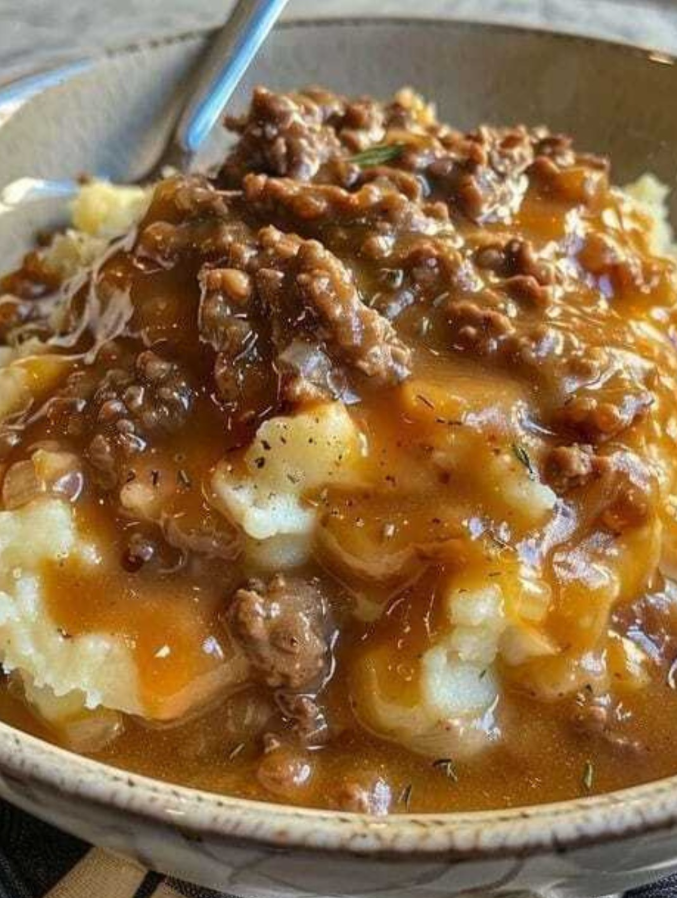 There’s something deeply satisfying about a steaming plate of creamy mashed potatoes smothered in rich, meaty gravy — especially when that gravy is made with browned ground beef, onions, garlic, and a splash of Worcestershire for depth. This Mashed Potatoes with Ground Beef Gravy recipe is classic comfort food at its finest: simple, filling, and packed with homestyle flavor.