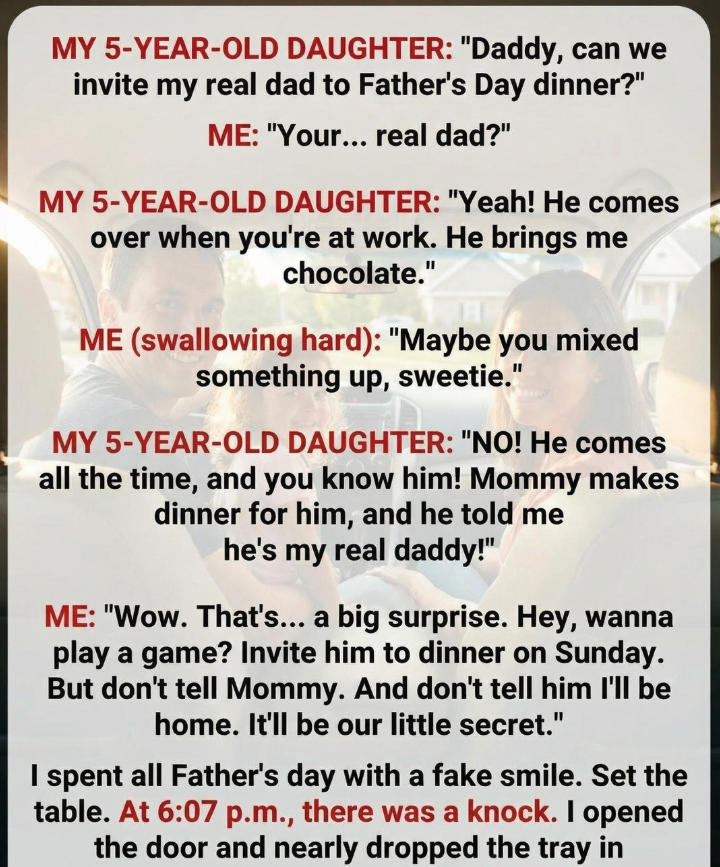 Nothing in Lily’s voice carried drama or warning. She asked it the same way she asked about homework or the weather. It slipped into the room as a simple fact about her day, something she assumed I already knew. That was what unsettled me most. Her innocence became a mirror, reflecting the gap between the world she lived in and the one I believed we shared. When she mentioned the “Father’s Day surprise dinner game,” I felt something inside me tilt, as if the floor had shifted. I guided her gently, asking one careful question after another, trying not to reveal how hard my heart was pounding.