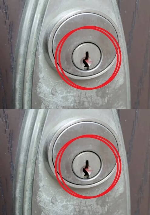 You come home after a long day, keys in hand, and notice something unusual: a small smear of red wax on your front door lock.