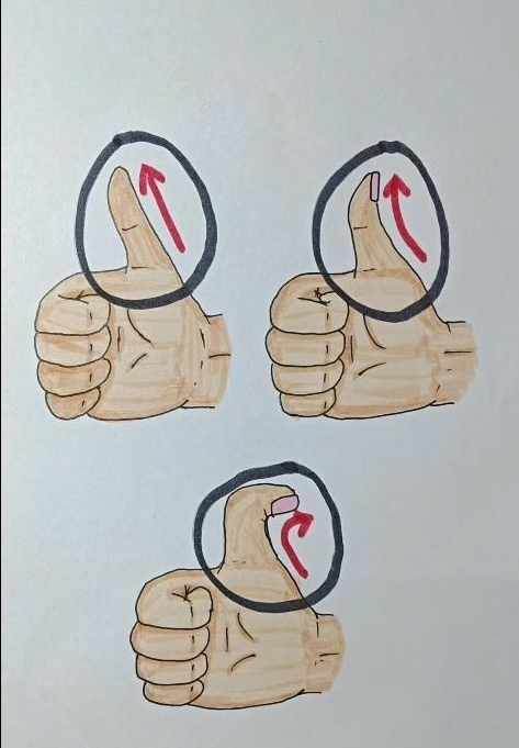 - Observe the direction your thumb is pointing (with your natural hand posture, no cheating!).