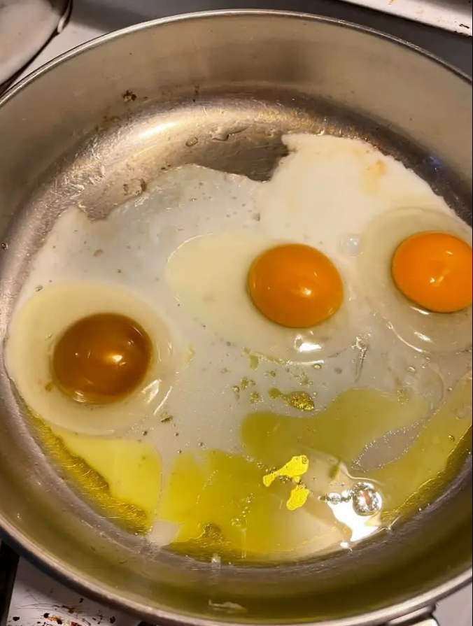 Sometimes when cooking eggs – especially farm-raised or free-range eggs – you may notice that one of the yolks looks unusual, with a dark or metallic color instead of the typical bright yellow or orange.